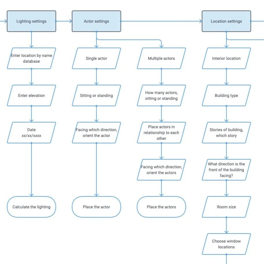 The Light and Shadow application was designed to help directors of photography plan shot lighting of actors in advance of a shoot.